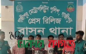 গাজীপুর মহানগরের বাসন থানা পুলিশ বিশেষ অভিযান পরিচালনা করে বিভিন্ন মামলার আসামিসহ মোট ৬ জনকে গ্রেফতার করেছে। রবিবার (১৯ এপ্রিল ২০২৬) পরিচালিত এ অভিযানে গ্রেফতারকৃতদের পরবর্তীতে বিজ্ঞ আদালতে প্রেরণ করা হয়।
